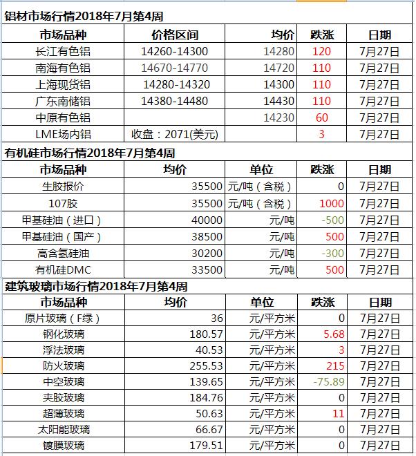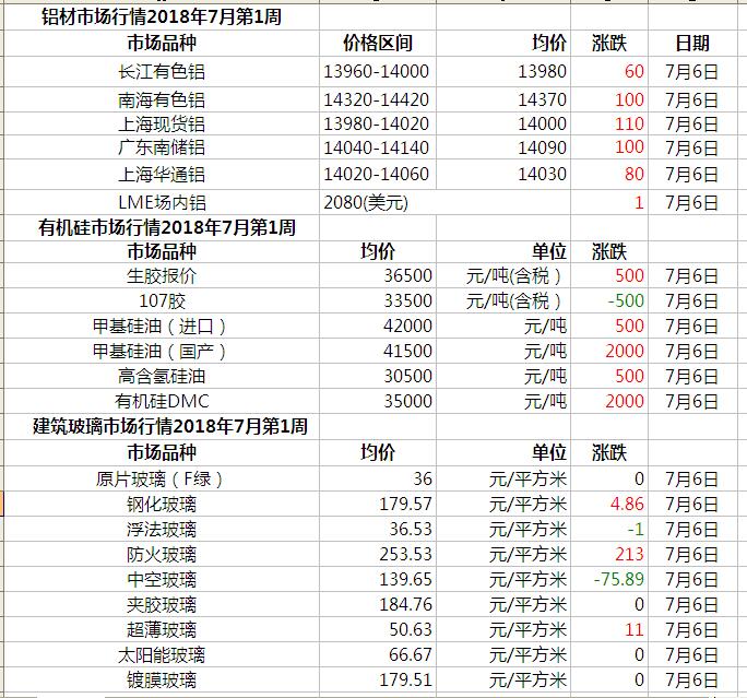 此原材料價格由中國幕墻網收集整理,僅供參考!