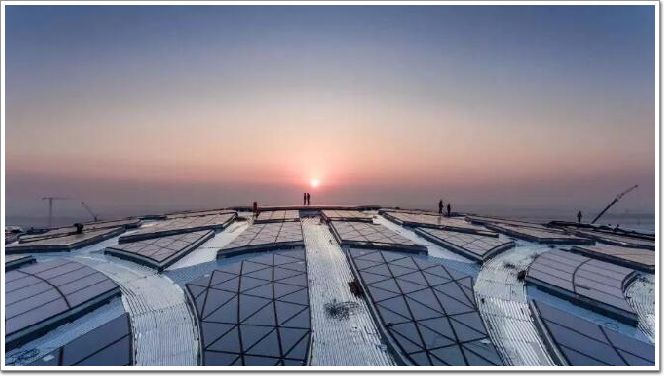俯看新機場主航站樓屋面,一副絢麗的“海星”圖案,五座指廊與航站樓主體像海星觸須向外綿延,散落其中的是八點“水滴”。這就是具備綠色節能功能的屋面玻璃幕墻系統,它是由一個中央天窗、六條條形天窗和八個氣泡窗組成的自然采光體系。北京新機場項目中難度最大的采光頂玻璃全部由北玻股份天津玻璃公司提供,共有彩釉鋼化結構節能玻璃8632塊,其中超寬內置金屬遮陽網的中空節能玻璃2342塊。
