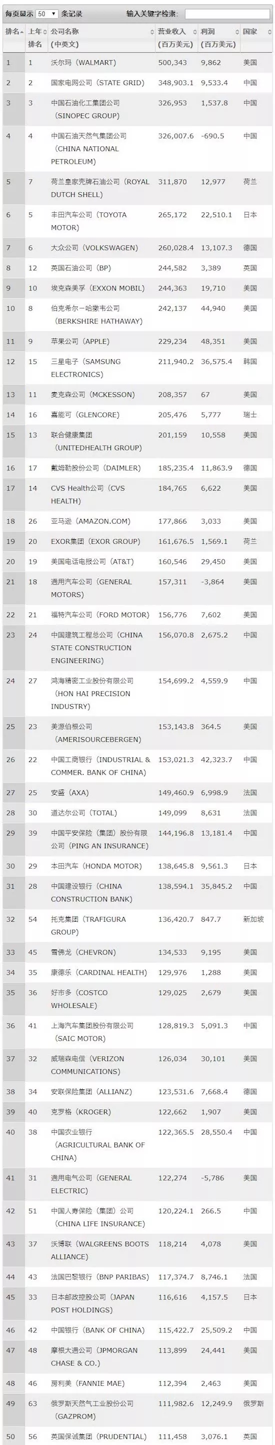 導讀:7月19日晚間,《財富》雜志公布了2018年的世界500強排行榜。