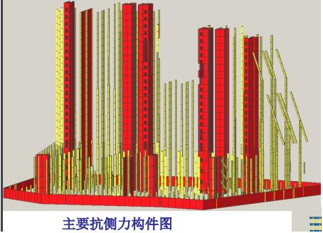 豎向構(gòu)件(詞條“構(gòu)件”由行業(yè)大百科提供):剪力墻厚度為400~200,連梁高度一般為700,寬度同墻厚;普通鋼筋混凝土柱截面為1200×1200、600×800~1800、600×600等,轉(zhuǎn)換柱為帶芯柱的鋼筋混凝土柱,截面為 1400×1400。