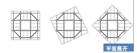 以中央主柱串接,單元體之間以微量的旋轉(zhuǎn) 角度差相接,整棟建物由下往上共旋轉(zhuǎn)了90度。
