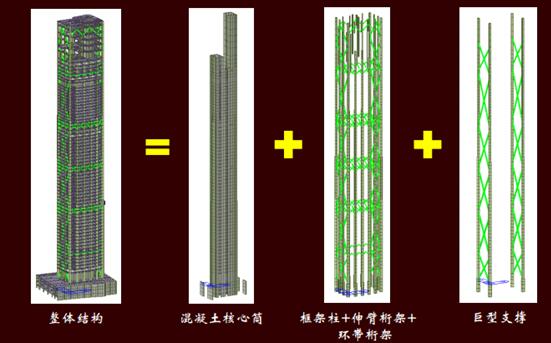 • 抗側(cè)力體系:框架-核心筒-巨型支撐-伸臂桁架