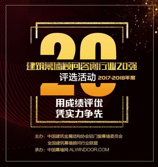 為了更好的推廣建筑幕墻顧問咨詢行業企業,幫助上游房地產商及設計院更好的了解建筑幕墻顧問咨詢行業品牌,中國建筑金屬結構協會鋁門窗幕墻委員會與全國建筑幕墻顧問咨詢聯盟聯合發起,共同主辦“2017-2018年度首屆建筑幕墻顧問咨詢行業二十強”評選活動(以下簡稱“TOP20”),并委托由中國幕墻網ALwindoor.com獨家承辦。