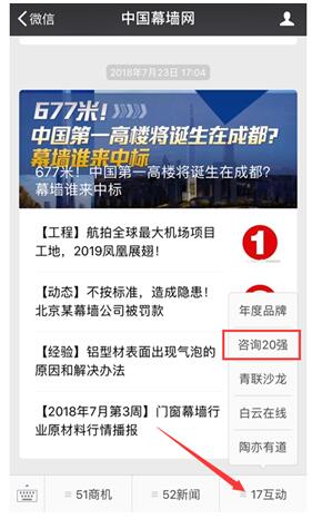 (1)關注中國幕墻網微信公眾號:alwindoor_wx 或掃下方二維碼