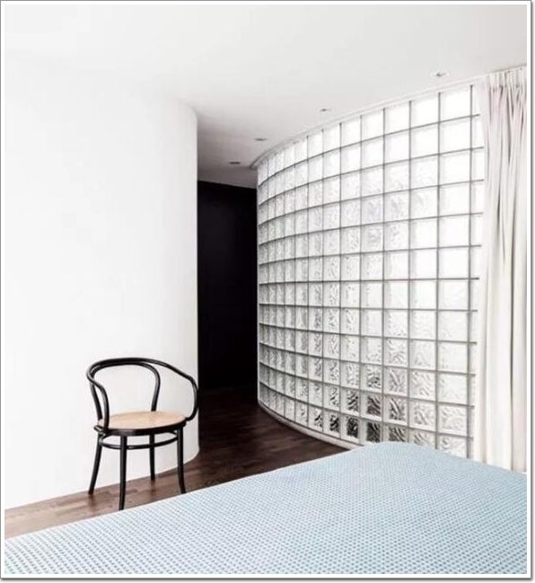 除了用在衛生間,玻璃磚具備的隔音性也可以用于房間的隔斷,無論是點、線、面的組合都能夠給墻壁帶來新鮮的玩法。
