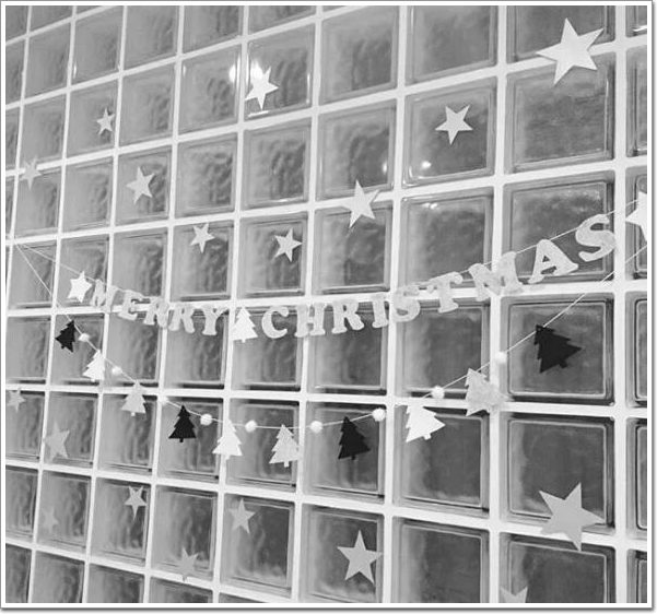 與乳膠漆墻面不同,玻璃材質能經受得住膠紙的反復撕扯,因此,大塊面的玻璃磚墻還可以作為家里的裝飾背景墻,生日、圣誕或者新年的時候可以在墻上粘貼應景的剪紙和掛飾來裝點節日氛圍,平常也可以作為小孩的畫作展示墻▼