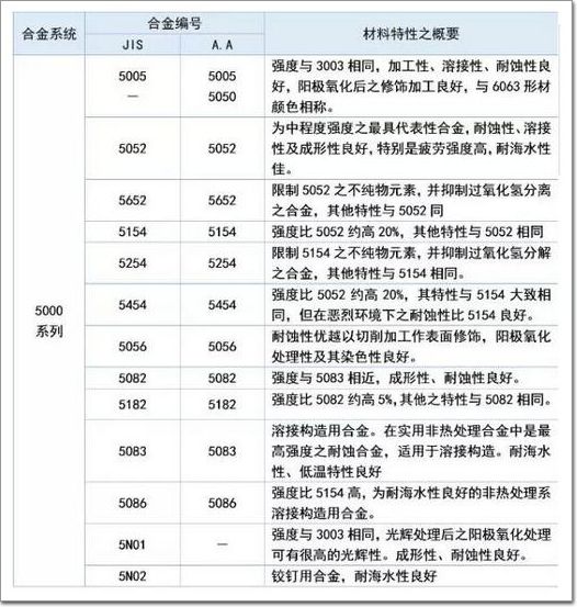 在手機上最常用的是5052,為中程度強度之最具代表性合金,耐蝕性、溶接性及成形性良好,特別是疲勞強度高,耐海水性佳,常用來做強度要求高的產品,但其著色效果較不理想,適合做噴砂工藝,不適合做化學打沙、霧面等,主要使用鑄造成型的成型方式,不適合擠壓成型。