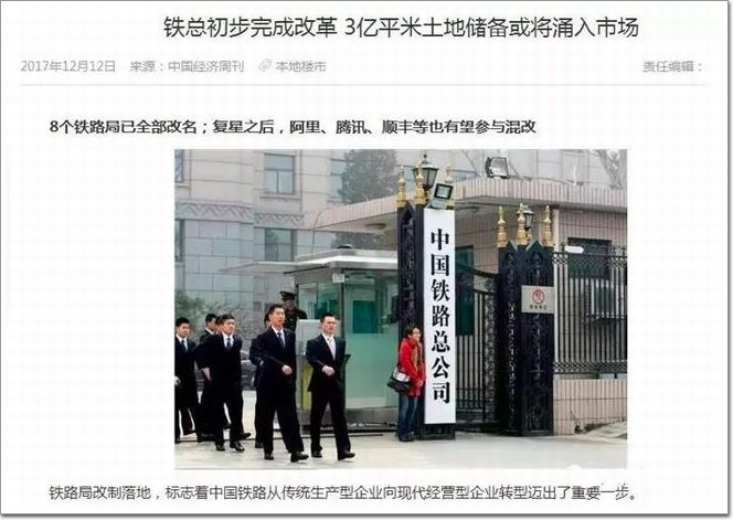 與此同時,民間資本進入鐵路有了新進展。據報道,鐵總已經分別向阿里、騰訊、一汽集團、順豐控股等民營資本發出參與混合所有制改革的邀請。