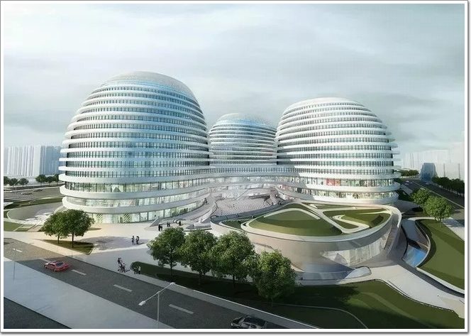 這座融動的優美建筑群不但營造了流動和有機的內部空間,同時也在與此毗鄰的東二環上形成了引人注目的地標性建筑景觀。