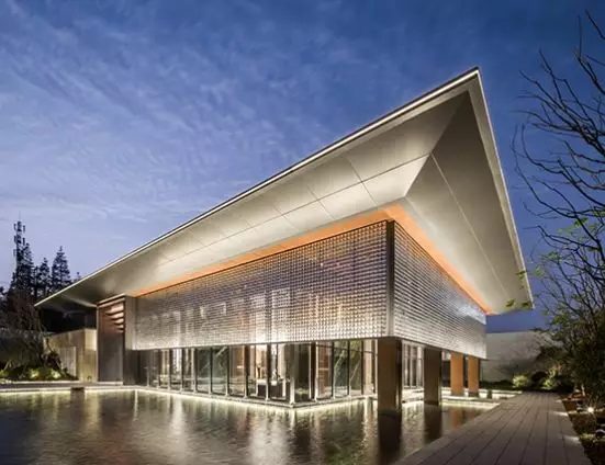 上海龍湖天鉅展示區,本項目做為顓橋地塊的展示區,外立面采用通透的玻璃幕墻與金屬色風鈴幕墻相結合,軸線西側采用光面和亞光面(詞條“亞光面”由行業大百科提供)摩卡石石材開放式錯縫拼接,主入口采用向里層層疊退的疊禮門。旨在打造傳承人文意蘊,營造都市書院的氛圍。