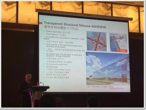 陶氏的技術專家團隊,在展會同期于上海明捷萬麗酒店,進行了題為“玻璃工業的硅酮新技術——全透明粘結(TSSA, TSSL 和HM2400)” 的討論會。研討會由陶氏消費品解決方案建筑部大中華區技術專家王文開主持,從技術研發,到產品應用等多個緯度,與參會的業界資深人士、各位經銷商伙伴,分享了依托上述三款產品實現的全透明玻璃幕墻粘結方案。