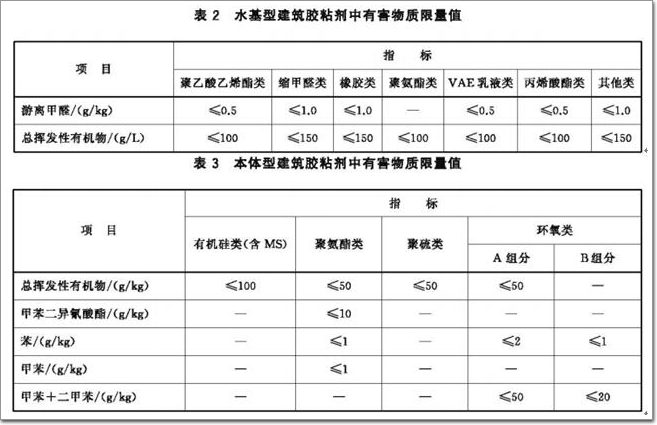 以上3種類型密封膠的有害物質限量如下表1、表2、表3。