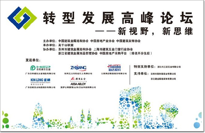本次會議是”轉型發展高峰論壇”系列活動在上海、深圳、杭州、西安、成都等地全國巡回舉辦之后,合和五金、之江有機硅、海達橡塑、堅朗五金、國強五金等企業聯袂的“莫干山聯盟”再一次傾情奉獻。出席此次會議的領導、嘉賓有:中國建筑金屬結構協會原會長姚兵先生、中國房地產業協會副會長張力威先生、中國建筑裝飾協會副會長兼副秘書長張京躍先生、中國房地產與門窗幕墻產業合作聯盟秘書長、中國建筑金屬結構協會副秘書長黃圻先生、中國建筑裝飾協會幕墻工程分會秘書長邱建輝先生、中國建筑防水協會建筑密封材料分會秘書長朱德明先生,以及對會議提供大力支持的蘇州市建筑金屬結構協會總工程師潘元元先生、上海市建筑五金門窗行業協會秘書長錢經緯先生、浙江省建筑金屬制品管理協會常務副秘書長張智先生等。此外到場的嘉賓還包括會議特別支持單位浙江興三星五金有限公司,支持單位深圳市聯和強實業有限公司、浙江建業幕墻裝飾有限公司等單位的領導,以及受邀的房地產與門窗幕墻行業企業代表。