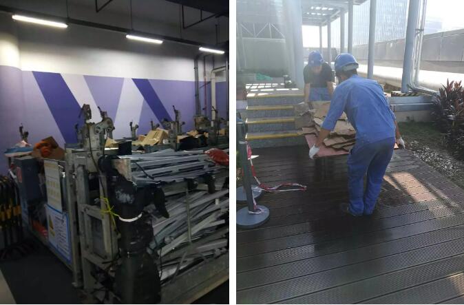 臺風來臨之前,中建深裝廣東分公司、中建照明對在建項目認真組織項目檢查,要求廣深地區項目負責人帶領班組人員逐層檢查,排除安全隱患。工人下班之前,召開應對臺風災害專題安全教育大會,組織全體管理人員和勞務班組接受安全交底,強化應急救災專業知識,做到有備無患。臺風過境后,中建深裝要求各在建項目必須認真排查現場施工環境,特別是對設備和操作平臺嚴加檢查,確保安全后才可復工。