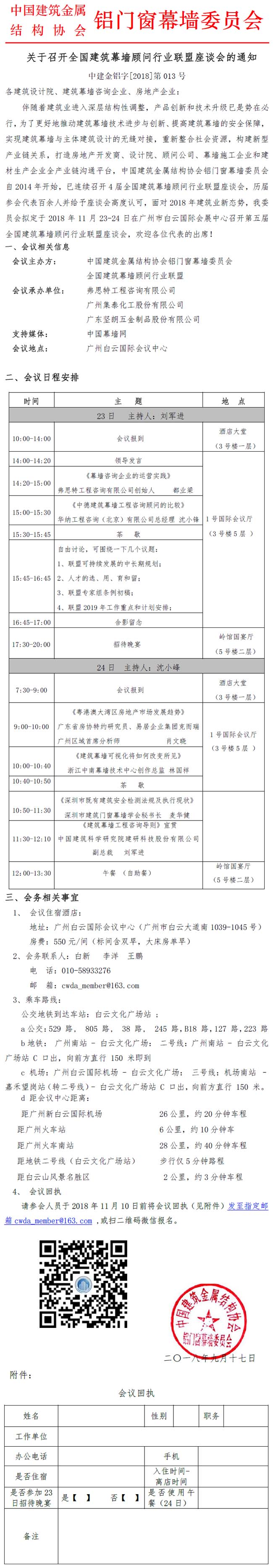 請參會人員于2018年11月10日前將會議回執(見附件)發至指定郵箱cwda member@163.com。