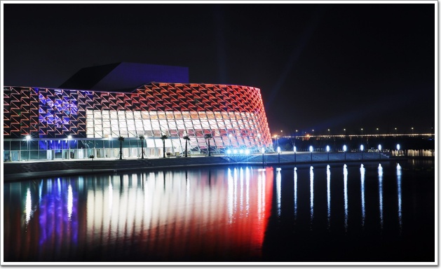 大劇院外形設計破為獨特,外皮為扭曲面玻璃幕墻,幕墻通過平板玻璃拼接扭曲而成,加上裝飾部件,整體看上去呈現出鱗片即視感,優雅大氣,新穎時尚。