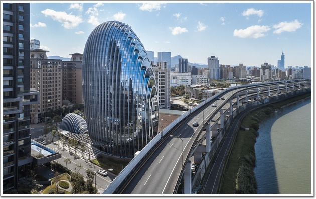 砳建筑融合當地地域文化,并以當代建筑形式呈現。設計靈感來源于附近基隆河畔的鵝卵石,獨特的造型在傳達圓潤和優雅的美學理念的同時,兼具力量和個性。建筑的“卵”狀外形作為生命的初始形態,隱喻地區的復興,更是知識的孵化器。