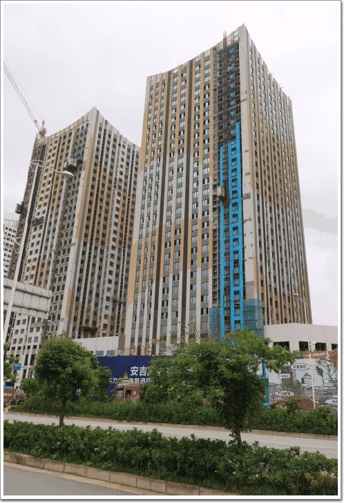 安吉萬達廣場整體布局完善,由四幢主樓和公寓以及商業裙樓組成,外立面外括石材幕墻、鋁板幕墻和玻璃幕墻,項目主要采用鋼支撐隱框玻璃幕墻系統,玻璃采用10+12A+10中空鋼化玻璃,整個幕墻工程由深圳市合盈幕墻裝飾設計工程有限公司負責設計和施工。