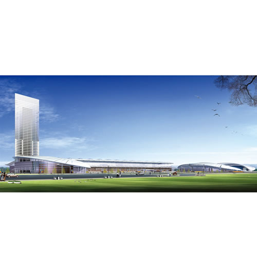 該項目位于四港聯動大道西側,鄭港一路以北,占據北港要塞地段。總建筑面積15.7萬平方米,建筑高度約83米,由A、B、C三棟高層塔樓構成,包含有5A甲級辦公、4星級酒店和精品商業。A塔樓的主要功能為酒店和辦公,共有19層。塔樓B、C均為16層的辦公樓。