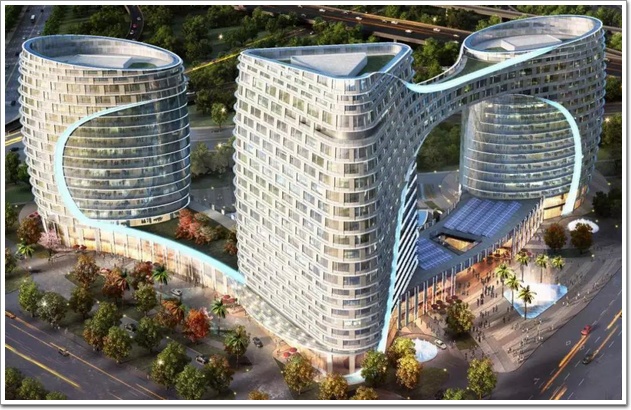 項目巧用“魚躍龍門”的寓意,在A塔與C塔之間以68米整體鋼結構空中連廊搭建“開放之門”,以靈動的曲面和弧線營造中華民族圖騰“龍”的意向和兼容并蓄的“水源”意向,以獨樹一幟的建筑風格和設計造型“吸睛”無數。中國幕墻網ALwindoor.com小編在鄭州的朋友幾番跟我說,你天天找工程,我這邊眼皮底下就有個現成的你干嘛不寫,圖片一過來,確定很有特色,于是拿出來分享給大家。