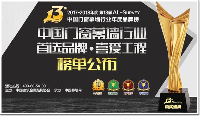 三月:沒有黑馬 實至名歸,行業大數據告訴您,誰是真正的“托普藤”(TOP10),聚焦宏觀經濟與地產設計優化和選材,探秘建筑經濟和新設計、新材料前瞻趨勢,幫助企業在政策導向下制勝突圍!3月10日第24屆全國鋁門窗幕墻行業年會在廣州召開。中國幕墻網承辦的“第十三屆AL-Survey門窗幕墻‘首選品牌榜單’與‘喜愛幕墻工程’”頒獎儀式同期舉行,并發布2017-2018中國門窗幕墻行業品牌研究與市場年度分析報告!活動以“創新引領行業發展 爭優塑造品牌形象”為主題,同時強調“用數據說話”的評審原則,堅持“沒有黑馬,實至名歸”的評選風格,已成為廣大房地產開發商、設計院以及行業專家、顧問咨詢公司等讀者群體進行品牌選擇和產品選購的重要參考依據。而每屆的“我最喜愛幕墻工程”評選,更是以其“新、奇、高、大”的入圍標準,被喻為“魯班獎”的前哨站!