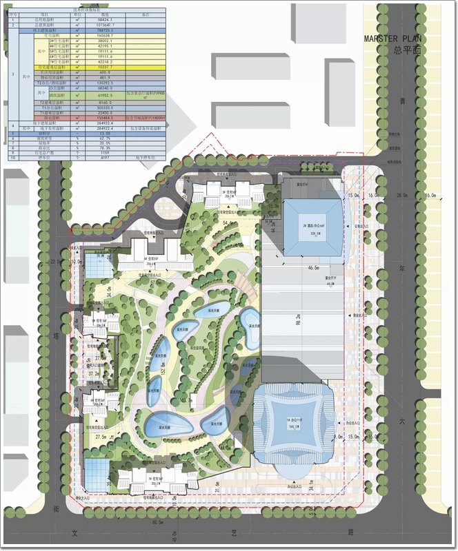 從我拿到的一份圖紙資料中,可以看到寶能這次的建筑面積地上接近80萬平方米,其中包括五棟200米的住宅,總計約16萬。