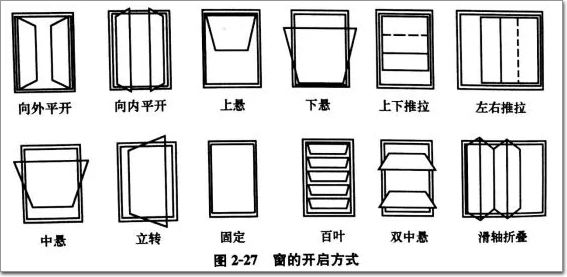 窗按所用材料不同,分為木窗、鋼窗、鋁合金窗、鋁塑窗、塑鋼窗等;按開啟方式,可分為平開窗、中懸窗、上懸窗(詞條“上懸窗”由行業(yè)大百科提供)、下懸窗、立式轉(zhuǎn)窗、水平推拉窗、垂直推拉窗、百葉窗、隔音保溫窗、固定(詞條“固定”由行業(yè)大百科提供)窗、防火窗、櫥窗、防射線觀察窗等,見下圖。