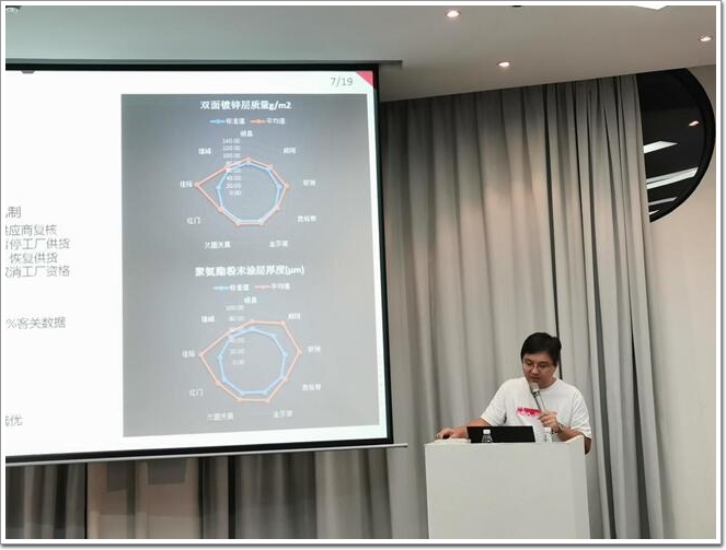 由萬科采筑合伙人/產品總監劉繼忠分享萬科采筑平臺的運營模式和采購管理經驗,針對材料的采購從品質、成本、標準及采筑模式上進行詳細講解,劉總發言中提到以摒棄簡單低價中標的模式,堅持技術參數和天網檢測的嚴謹基礎,寶貴經驗分享得到來自龍湖、招商等房企的認同贊許。
