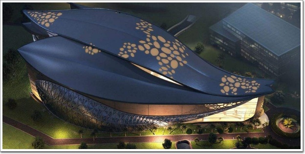 博物館的外立面主要由金屬鋁板和玻璃面板兩大部分組成,幕墻類型則包括屋面鋁板玻璃幕墻、立面鋁板玻璃幕墻、兩翼葉脈鋁板玻璃幕墻等形式,幕墻面積24135.84平米,其中UHPC系統(Ultra-High Performance Concrete——超高性能混凝土)面積7805平米,玻璃幕墻系統面積4155.84平米,屋面系統面積10075平米,兩翼葉子系統面積2100平米,幕墻造價11885萬元。