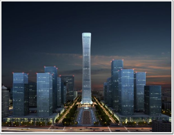 中國尊,位于北京商務中心區核心區Z15地塊,東至金和東路,南鄰規劃中的綠地,西至金和路,北至光華路,是北京市最高的地標建筑。尊,古之禮器。意為敬奉,起時雙手捧至頂,行頂天立地之勢。所以設計者以“中國尊