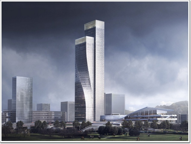 該項目外形極具辨識度,大扭擰角度的幕墻可以在第一時間抓住所有人的視線,建筑形體上的非線性(詞條“非線性”由行業大百科提供)與線性曲線相互交織,柔化立面輪廓,鋼筋水泥間直線與曲線咬合錯疊,玻璃幕墻隨之彎轉變化,以堅硬的建筑材質表現了柔韌的弧度之美。而項目面對廣場這一寬闊的開放空間,讓該建筑具備成為標志性塔樓的有利條件。