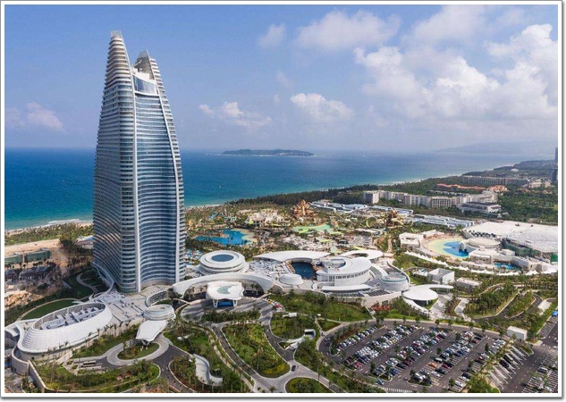 亞特蘭蒂斯度假酒店坐落在三亞海棠灣濱海岸線中部,占地54萬平方米,包括一座超高層(詞條“超高層”由行業(yè)大百科提供)酒店塔樓(詞條“塔樓”由行業(yè)大百科提供)和兩層商業(yè)裙樓,主塔高227.5米,共49層,是三亞最頂級的七星級酒店。酒店延續(xù)之前的傳統(tǒng)以海洋為主題,標志性的水底套房、大型水族館和水世界冒險樂園都一同來到中國。這是世界上第三座亞特蘭蒂斯,也是國內(nèi)第一座集海洋文化、會演等 8大業(yè)態(tài)為一體的奢華酒店,是海南地標(詞條“地標”由行業(yè)大百科提供)性建筑。