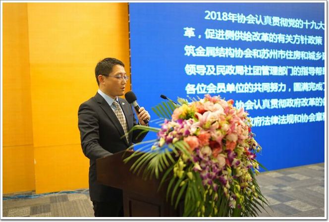 秘書長王子衡,作了協會工作總結及計劃報告。報告詳細介紹了2018年協會的主要工作情況,著重指出:2018年協會認真貫徹黨的十九大關于深化改革、促進側供給改革的有關方針政策,在中國建筑金屬結構協會和蘇州市住房和城鄉建設局有關領導及民政局社團管理部門的指導幫助下,經過各位會員單位的共同努力,圓滿完成了協會年度工作計劃。協會認真貫徹政府改革的各項政策和舉措,堅持在政府法律法規和協會章程規定的范圍內有序開展工作,積極帶領和引導企業克服前進道路上的困難,在側供給改革中,為企業動腦筋想辦法,努力搭建企業與政府,企業與企業之間的橋梁,強化紐帶作用,堅持以服務為主線,積極開展行業各種形式的學習、交流、溝通等活動,取得了一定成效。