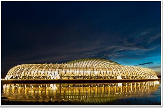 說到這座教學(xué)樓,到底有什么特別呢,那便是它別出心裁的安裝了一對(duì)“翅膀”用來散熱,設(shè)計(jì)特色是其魚骨形結(jié)構(gòu),屋頂可以調(diào)節(jié)角度,來適應(yīng)太陽光的不同角度,在屋頂骨架的下面,是由全玻璃幕墻組成的巨大穹頂。當(dāng)屋蓋一開一合時(shí)整個(gè)建筑猶如在飛一般,復(fù)雜的動(dòng)態(tài)陰影系統(tǒng)及鋁制的“翅膀”,在運(yùn)動(dòng)的時(shí)候極具震撼,從遠(yuǎn)處看就如大鳥的翅膀撲閃,給人強(qiáng)烈的視覺沖擊。