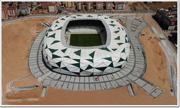 科尼亞城市體育館坐落在科尼亞城市北部,距離市中心9公里,占地面積約450000平米,包含一個(gè)足球運(yùn)動場、一個(gè)游泳館、一個(gè)自行車賽車場和一個(gè)廣場。該體育館是科尼亞城市文化符號與現(xiàn)代建筑相互碰撞的產(chǎn)物,建筑的外立面白綠相間的顏色正是代表了這個(gè)城市的足球隊(duì)。