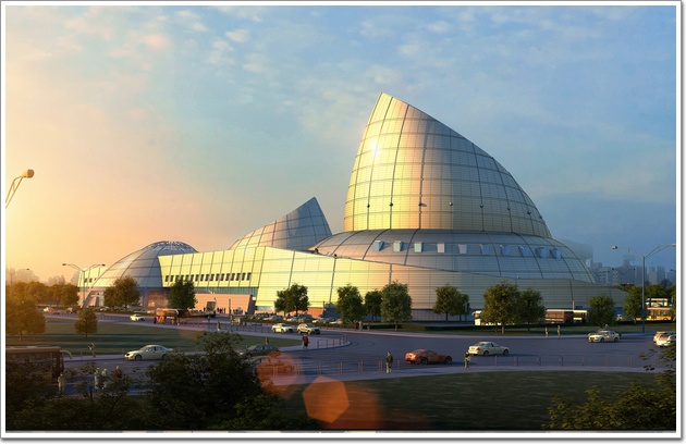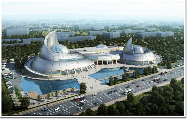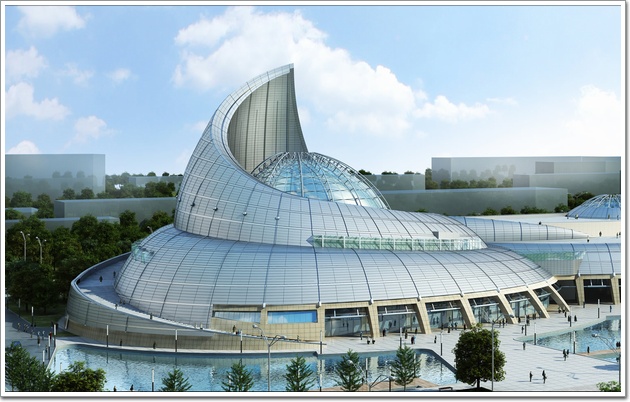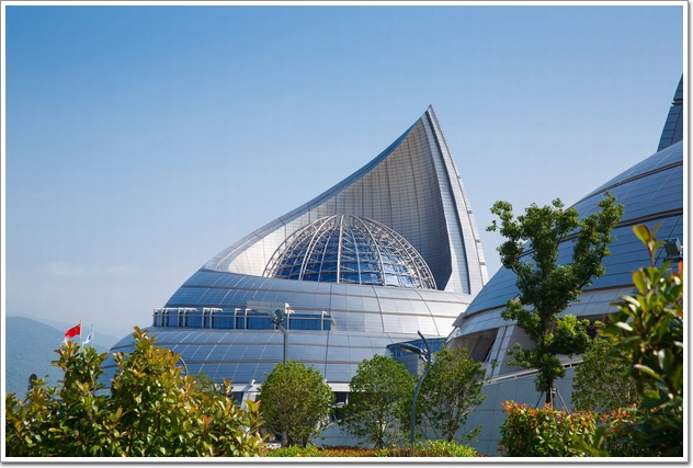該項(xiàng)目整體設(shè)計(jì)新穎、獨(dú)特,設(shè)計(jì)從海螺中獲取靈感,采用兩大一小三個(gè)螺旋造型巧妙組合體現(xiàn)建筑的海洋元素。 工程主體結(jié)構(gòu)是鋼筋混凝土結(jié)構(gòu)和鋼結(jié)構(gòu)的組合,玻璃穹頂為不規(guī)則橢圓球體雙曲面(詞條“曲面”由行業(yè)大百科提供)結(jié)構(gòu),最大面板尺寸為2935mm*1773mm,穹頂骨架采用鋁合金龍骨,受力骨架為鋼結(jié)構(gòu)。