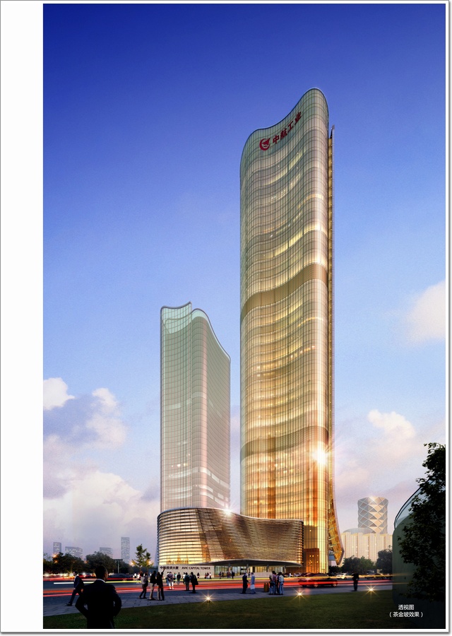 中航投資大廈整體效果圖——裙擺造型以及裙樓雙曲面造型