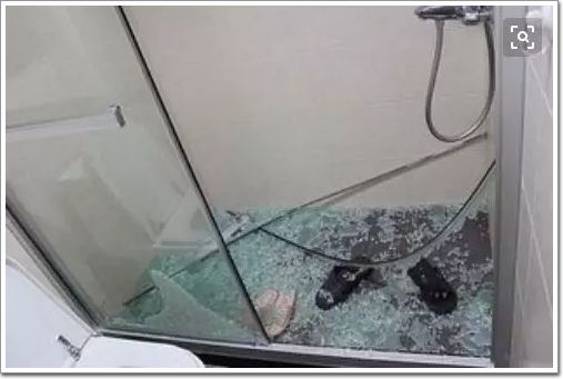 小白:第二天早上的時候,女友在洗澡,我在外面,我在洗頭,就嘭的一下,玻璃門就爆開了,當時整個玻璃門都爆開了,玻璃四濺的哪都是,我身上也是,當時我低頭,女朋友的腳踝已經割開了。血,說實話,當時從浴室里出來就比較麻煩了,當時出來,鋪了一層浴巾,上面都是血跡。