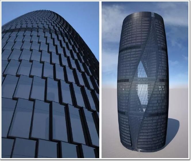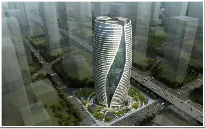 所以在設計上,首先用一個圓桶將兩個塔樓裝在一起,然后在兩個塔樓中間用一個眼睛般的月牙形做了一個減法,做完減法之后再將建筑的頂部進行扭轉,隨著建筑的逐層旋轉,在建筑的內部形成了猶如DNA雙螺旋曲線般的空間形態效果。