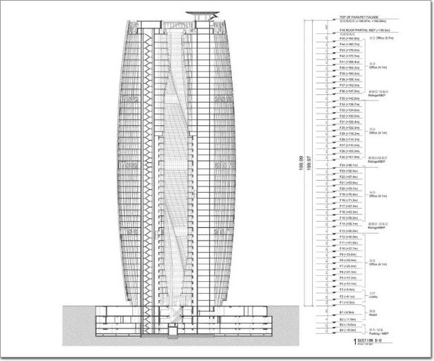 總之,麗澤SOHO的建筑功能還是比較簡單的,不過這個建筑由于它特別的造型,結構部分的設計可不簡單。