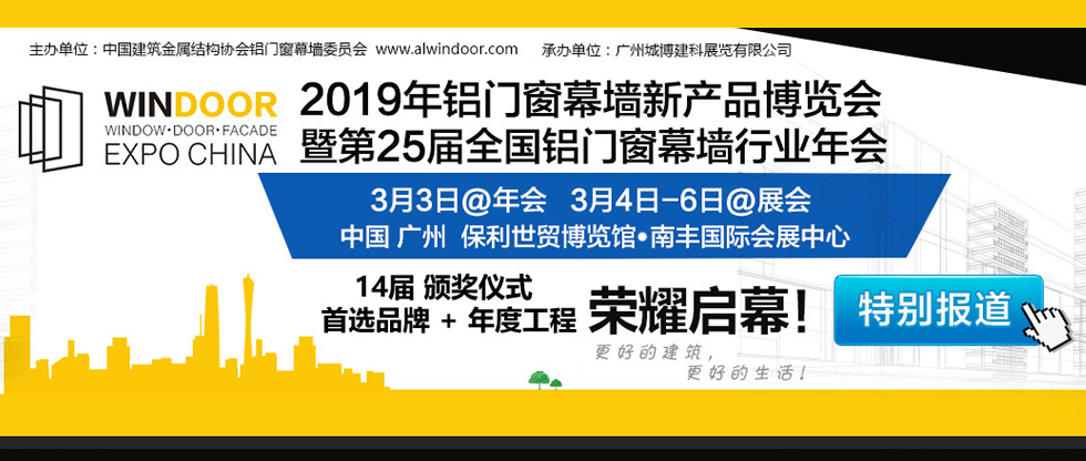 2019年3月4日,由中國建筑金屬結構協會鋁門窗幕墻委員會主辦的“2019全國鋁門窗幕墻新產品博覽會”在廣州保利世貿博覽館盛大舉行。作為新春第一站!每年3月的廣州.全國鋁門窗幕墻博覽會,倍受廣泛關注,當中的新技術、新產品、新工藝、新材料成為門窗幕墻行業同仁探尋未來發展趨勢、挖掘潛在市場空間的最佳平臺。