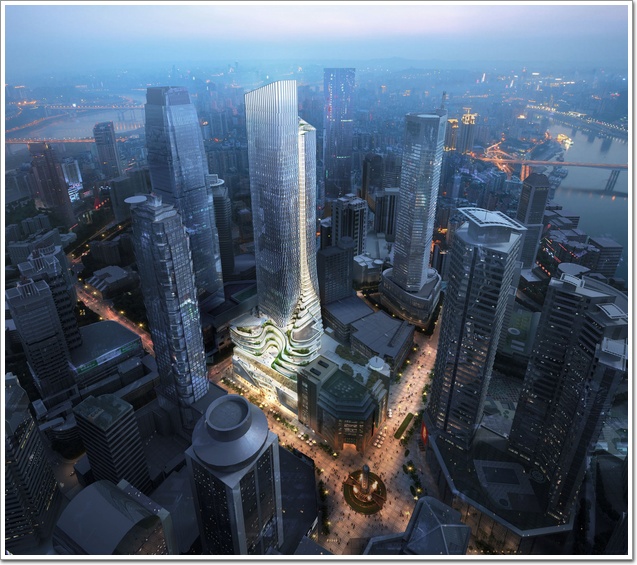 項目整體設計由全球最大的建筑設計事務所之一,Aedas的主席紀達夫和董事溫子先操刀, 從中國古諺語 “書中自有黃金屋”中汲取設計靈感,并融入重慶當地文化元素,打造出動感十足的商業綜合體,同時將擁有2萬平米的超級新華書店嵌入裙樓的中心位置,這也將成為重慶最大的書城。而這個超級書城,巧妙地運用了黃金的元素來打造表皮,恰恰應和了設計理念中的“書中自有黃金屋”。