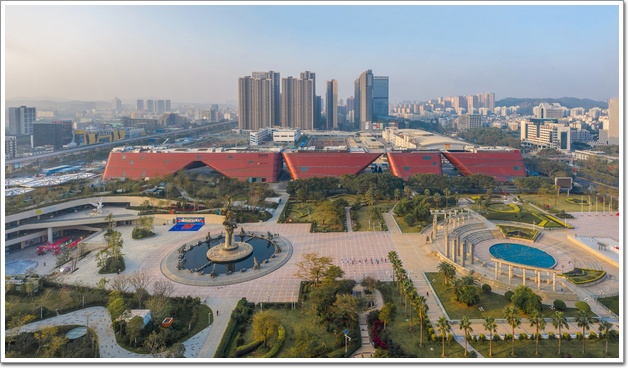 龍崗文化中心項目由四個互相懸垂的紅色體量構成,體量之間形成了大小不同的拱洞,減少建筑對廣場的重壓感,同時連通了建筑西側的龍崗商業區和東側的龍城廣場,為公眾活動提供更為開放的空間。