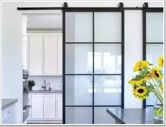 ▲玻璃的加持,讓“谷倉(cāng)門(mén)”有了高檔裝修應(yīng)該有的樣子