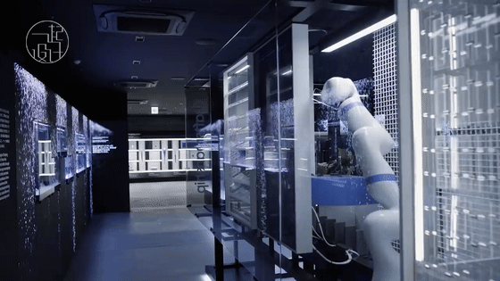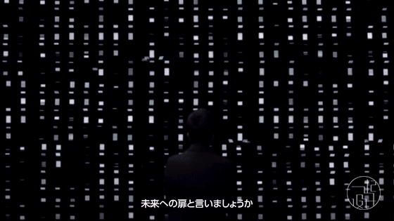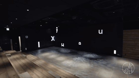 房間盡頭的墻壁是由 30,000 個 OLED 照明模塊組合出的仿真光墻 ▼