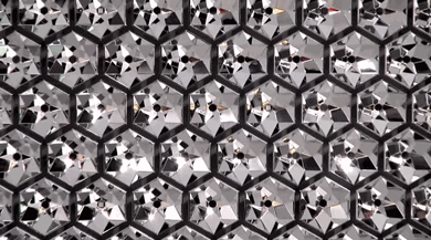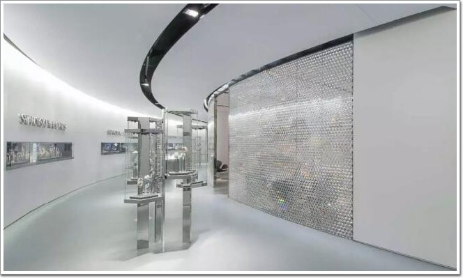 2013 年為施華洛世奇設(shè)計的店鋪,采用了六邊形反光板,在內(nèi)部設(shè)置了閃爍的燈光,使墻面看起來灼灼生輝 ▼