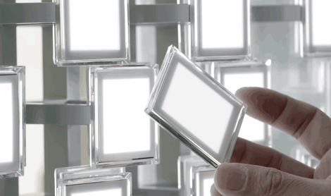 在和 LG 合作的展覽「SF Senses of the Future」中,他設(shè)計了由 15 毫米厚的雙面 OLED 面板制成發(fā)光的椅子。