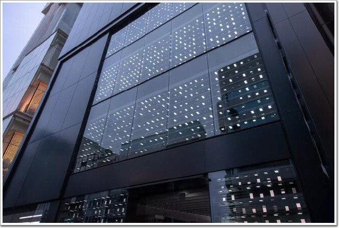 透過玻璃幕墻,手機屏幕發(fā)出的光像是飄浮在空中,未來感十足 ▼