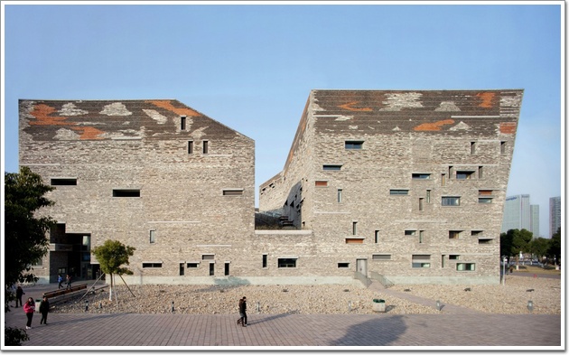 該項(xiàng)目位于浙江寧波鄞州區(qū)首南中路,因此它又被稱(chēng)為鄞州博物館,項(xiàng)目總建筑面積30000平方米,主體建筑長(zhǎng)144米,寬65米,高24米,造價(jià)1.5億元,由中國(guó)知名建筑師,普利茲克建筑獎(jiǎng)首位中國(guó)籍獲獎(jiǎng)?wù)咄蹁鞒衷O(shè)計(jì)。它外形似船又似山,看似隨意卻又好像很?chē)?yán)謹(jǐn),特別是它的外墻設(shè)計(jì),更是讓人過(guò)目不忘。