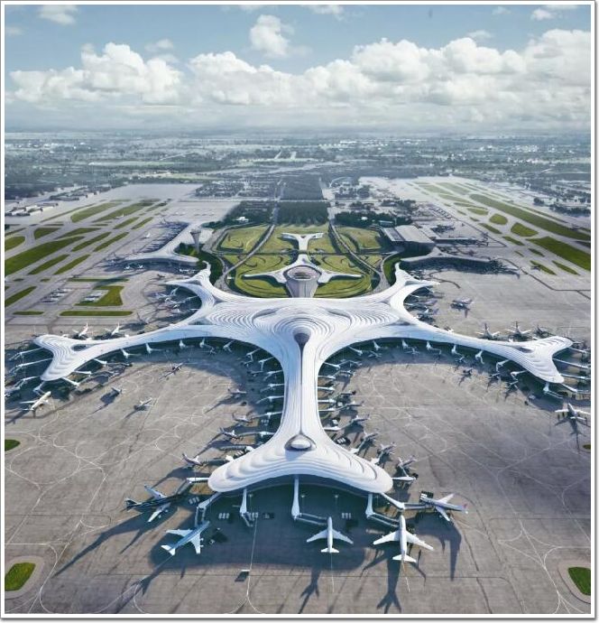 MAD的設(shè)計避免出現(xiàn)傳統(tǒng)航站樓的尺度過大、用者不便利的缺點,創(chuàng)造了貼近人體尺度、“有溫度”的宜人氛圍,同時實現(xiàn)綠色節(jié)能的目標。擁有89個近機位的T3呈雪花形五指廊狀,大大縮短了旅客步向登機口的時間;中心港灣多條滑行通道的設(shè)計有效提高機位使用率。